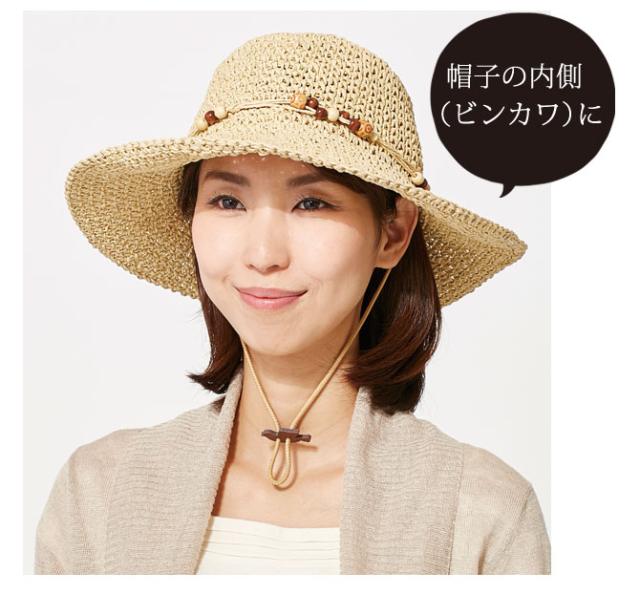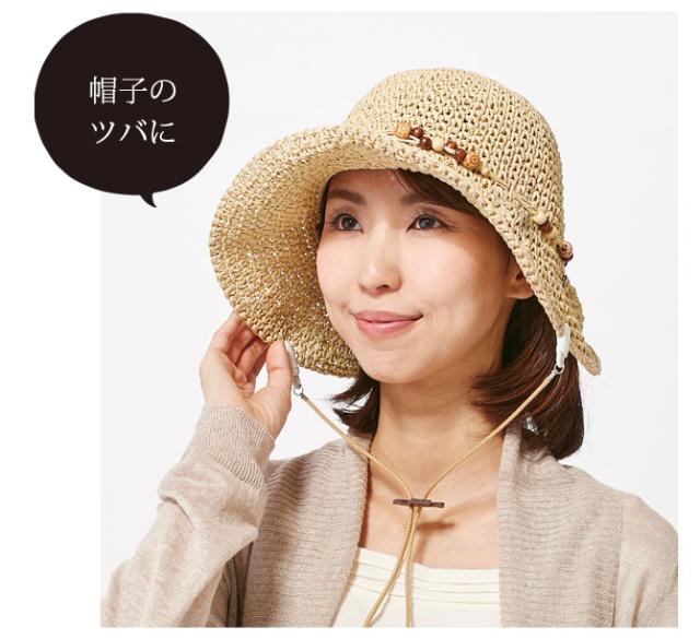 使い方は簡単、お手持ちの帽子の内側やツバに取り付けるだけ。