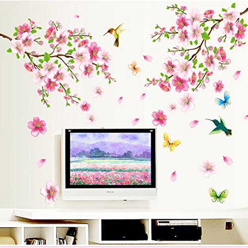 ウォールステッカー 春満開 桜と蝶と鳥たち 壁シール ピンク 和風 さくらの花 貼るだけで雰囲気一変 はがせる ウォールデカール