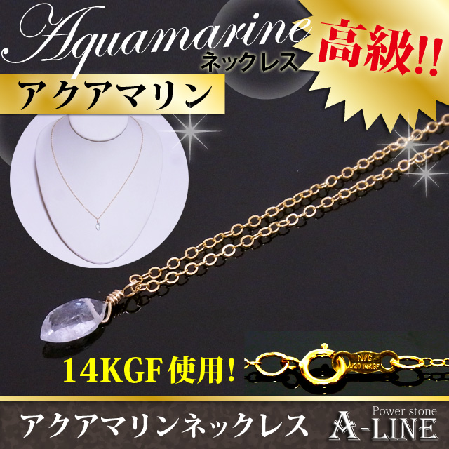 ネックレス アクアマリン(透明色) 14KGF平あずきチェーン45cm ポーチ付き 3月の誕生石 PW-3160