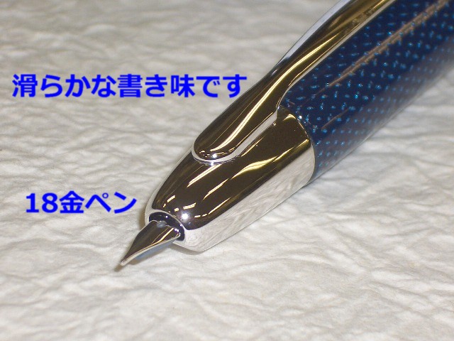 ペン先は細字、18金ペンで滑らかに筆記できます。