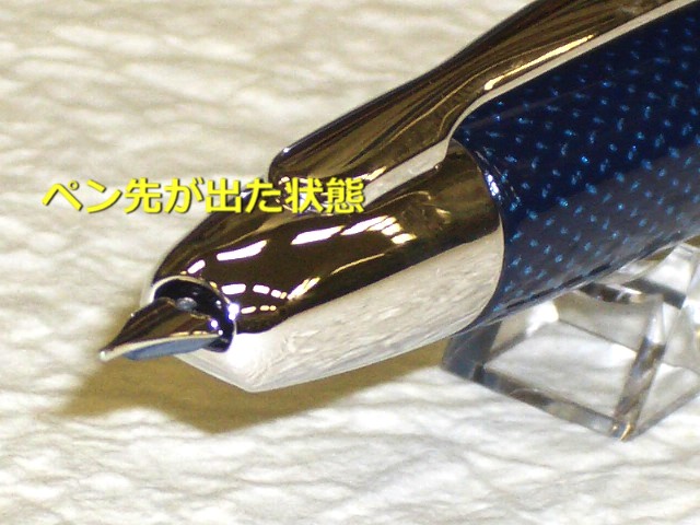 名前の通り絣模様をイメージしたデザインのノック式万年筆。実際手にしてみるととても高級感のある万年筆です。