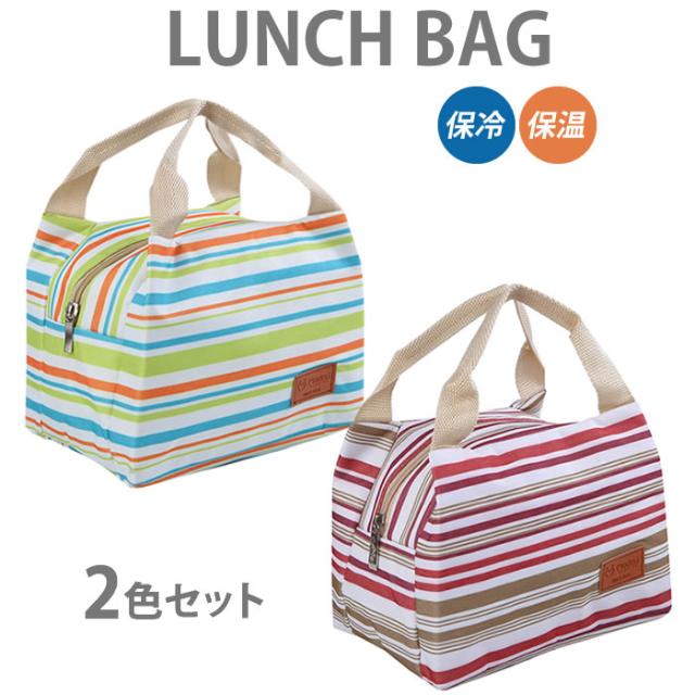 ランチバッグ 保冷バッグ 2個セット グリーン&レッド ランチ バッグ ボーダー柄 帆布 トート 保冷 保温 送料無料