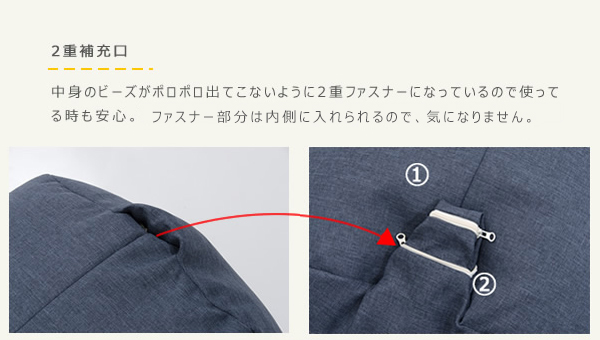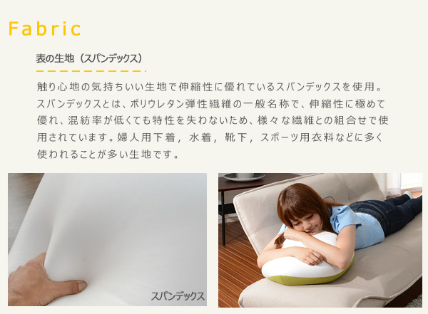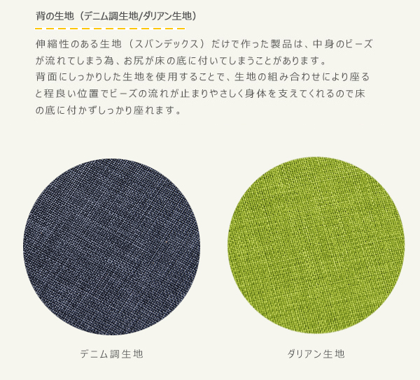 構造部材: 【中材】発泡ポリスチレンビーズ 【生地】(前)収縮する生地: スパンデックス ポリウレタン弾性繊維