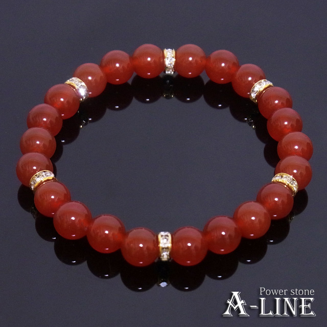 パワーストーン ブレスレット 7月の誕生石勝利や成功の石 カーネリアン8mm(単色)・キラキラロンデル PW-3162
