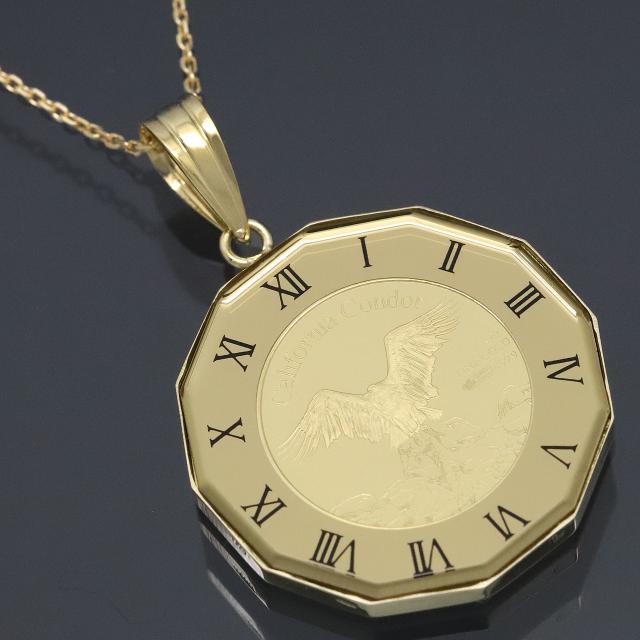 コイン ネックレス ペンダント ウルフ&コンドル 時計枠ゴールド 24金 K24 純金 1/25oz PAMP社製 K18チェーン付 【誕生日 お祝い プレゼント 贈り物 ギフト】【dgpcp】
