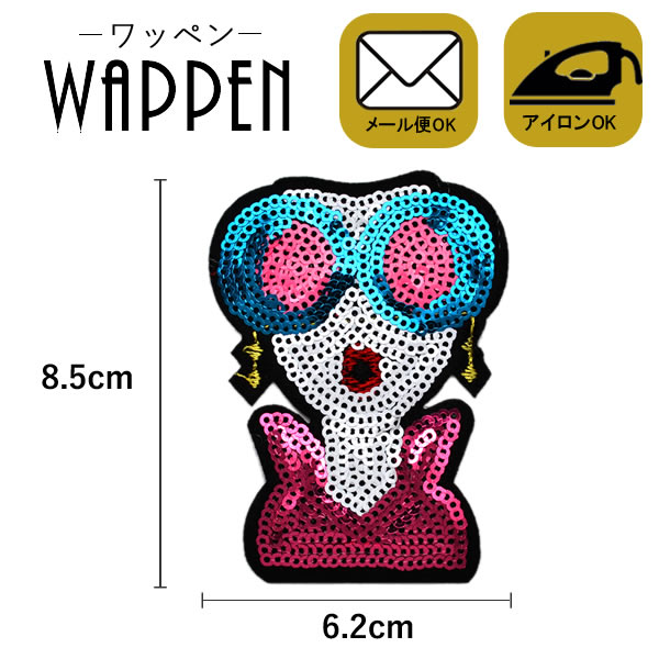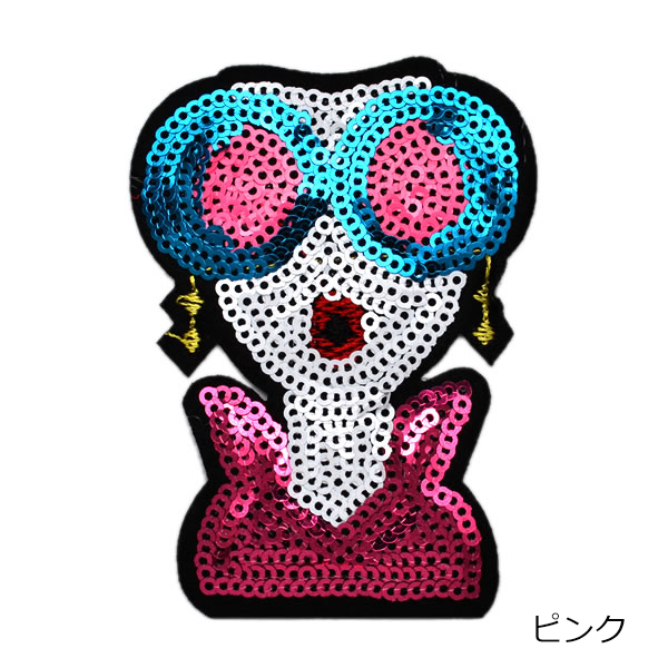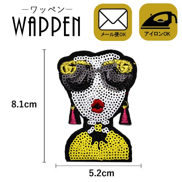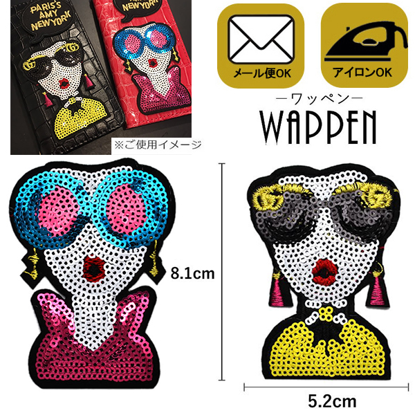 ワッペン スパンコールワッペン アイロン接着 ガール サングラス キラキラワッペン アップリケ アイロンワッペン 手芸 母の日 プレゼント ギフト