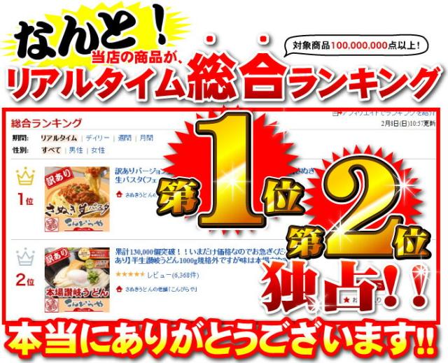 - 訳あり理由は「正規品より少しだけ長い麺になります」との事ですが、長さはあまり関係ないように思います。 ただ、900gが1つの袋にどさっと入っていたので、折れてしまったのが少しありました。 量と味と価格...