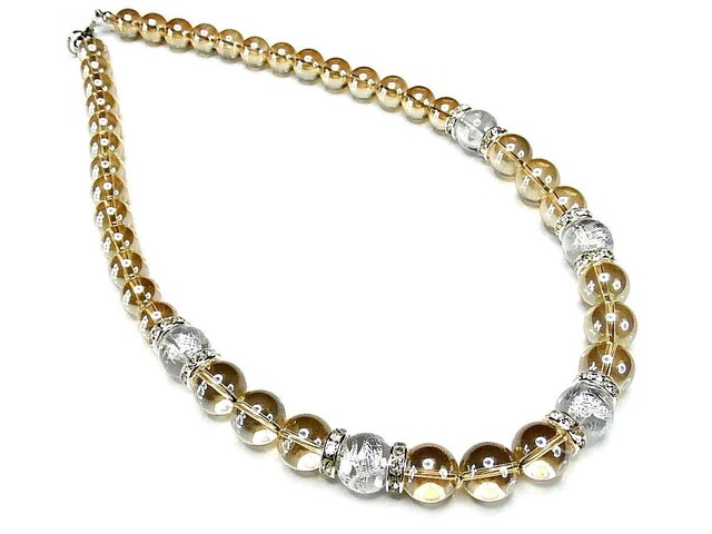 ゴージャス昇龍手彫り水晶ゴールドアクアオーラ天然石ネックレス50cm