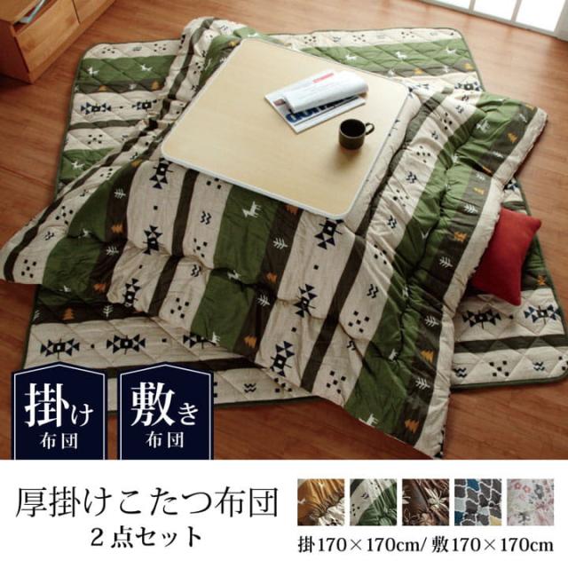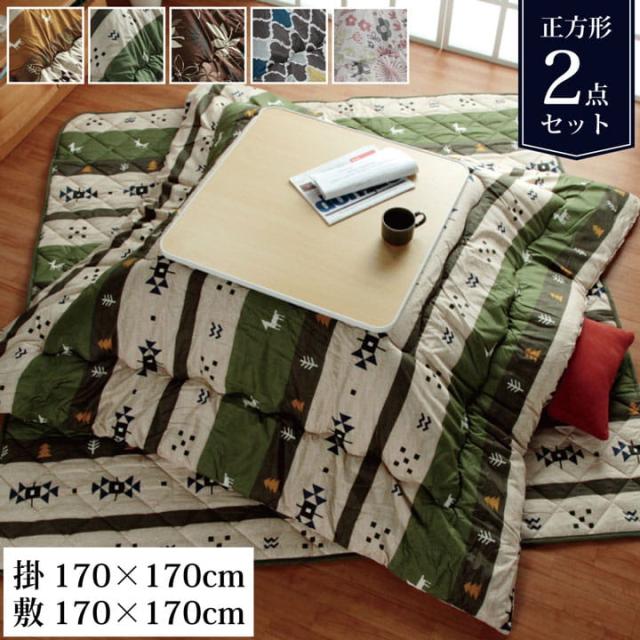 こたつ布団 正方形 こたつ布団セット正方形 布団セット 170×170cm こたつ掛敷 2点セット「ココットリーフモロコマオ」 モダン こたつ あったか 冬