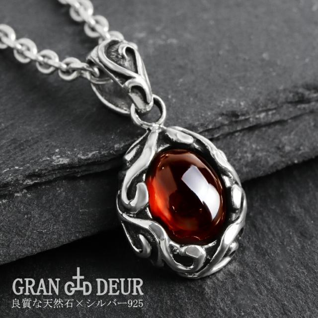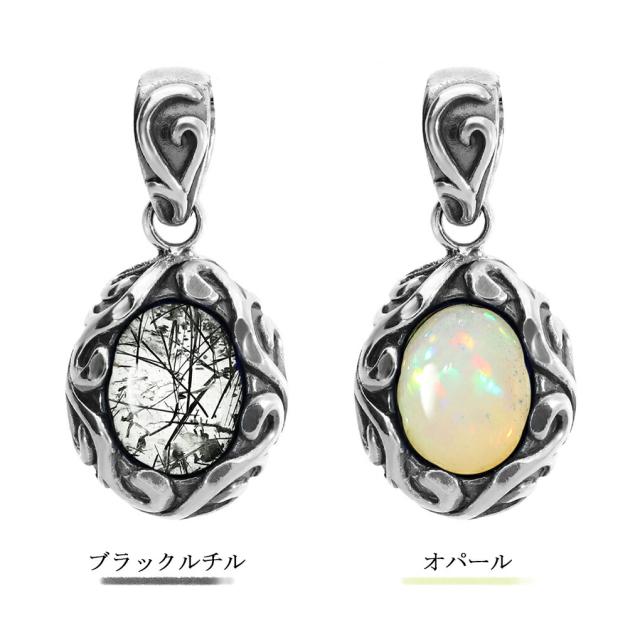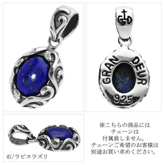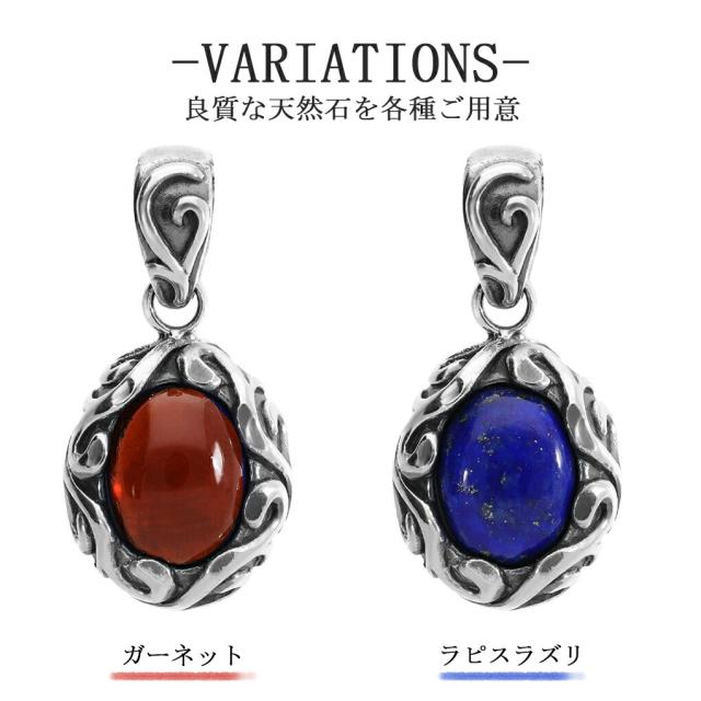 GRAN DEUR 選べる 天然石 ペンダントトップ ガーネット ラピスラズリ オパール ブラックルチル スター サファイア シルバー 925 アラベスク
