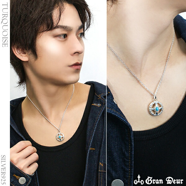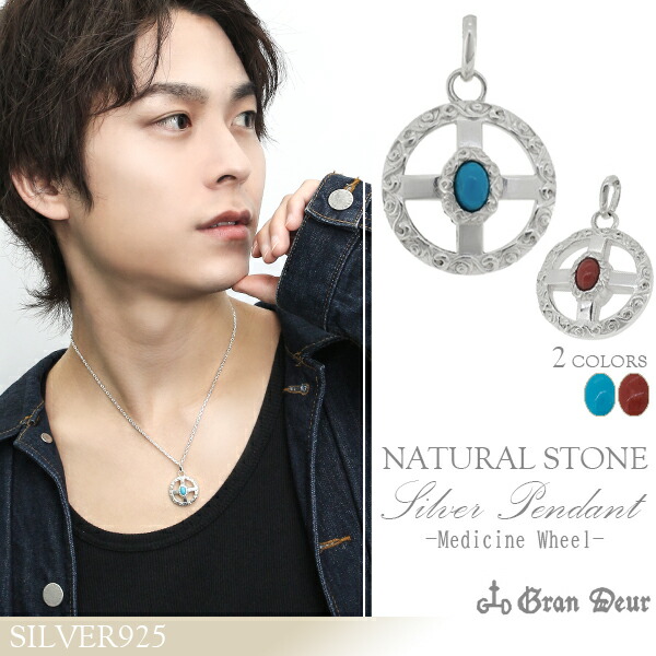 GRAN DEUR メディスンホイール ターコイズ コーラル シルバー ペンダントトップ チェーンなし シルバー925 メンズ ネックレス 唐草 アラベスク 円