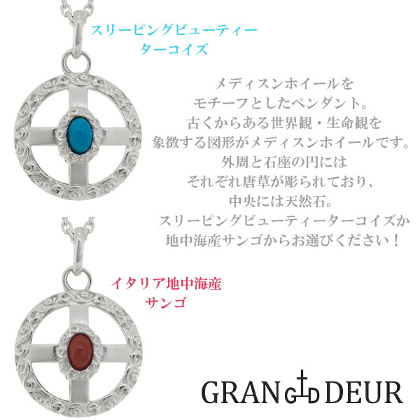 【GRAN DEUR】メディスンホイール ターコイズ コーラル シルバー ネックレス(チェーン付)シルバー925/メンズ ネックレス ブランド