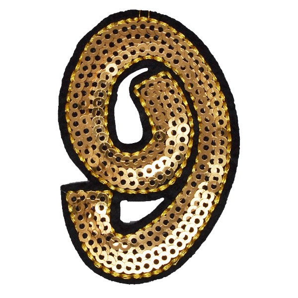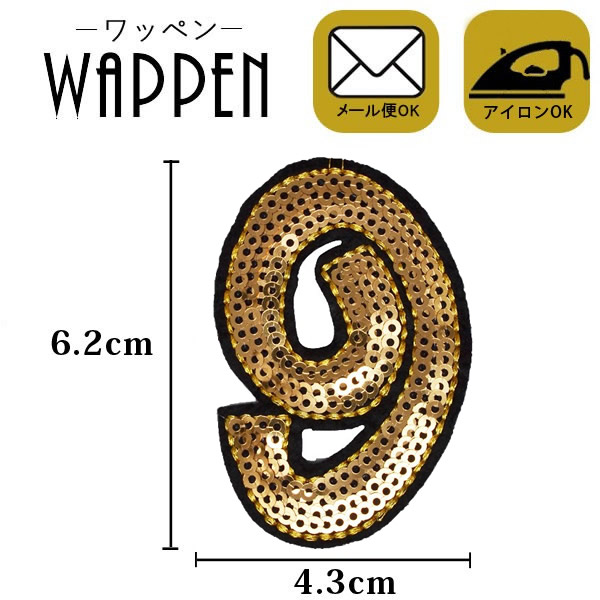 ワッペン アップリケ スパンコールワッペン アイロン接着 ハンドメイド 縦6.2cm×横4.3cm ゴールド 数字 ナンバー 9 6母の日 プレゼント ギフト