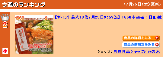 楽天だしランキング1位獲得
