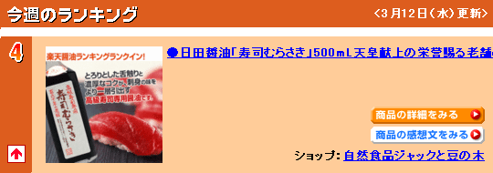 楽天醤油ランキングランクイン