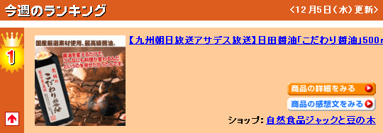 楽天醤油ランキング1位。