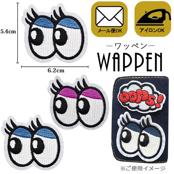 目玉 ワッペン 刺繍ワッペン アイロン接着 縦5.4cm×横6.2cm 目 アップリケ アイロンワッペン かわいい 可愛い 手芸母の日 プレゼント ギフト