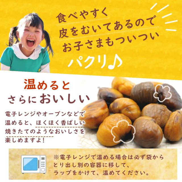 ほくっと食感で甘い天津甘栗の皮を剥いちゃいました小袋入りで食べきりサイズ行楽のおやつにも最適なむき栗を4袋セットでお届け致します。