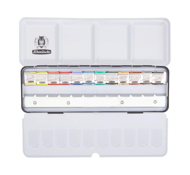 Schmincke シュミンケ ホラダム 透明水彩絵具 固形水彩 ハーフパン 12色セット 金属ケース入 74412