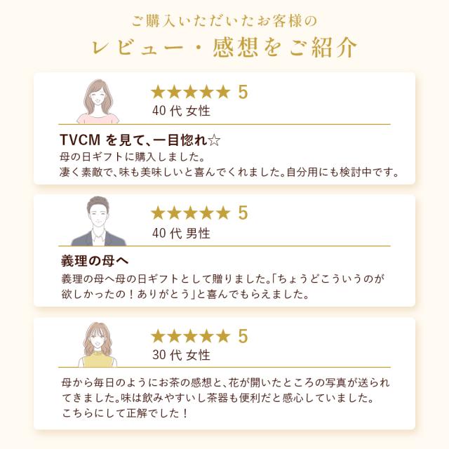 - 3人姉妹でみんなカーネーションじゃ貰った母もどうかな?と思い、この商品を頼みました。 喜んでくれました。ジャスミンティーって言うのが少し問題かな? あたしはジャスミンティー飲めないので…飲める人にが限...