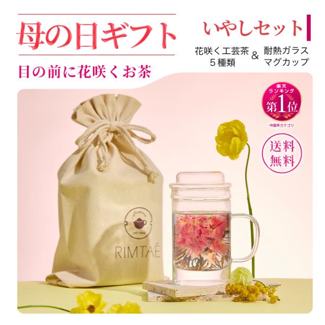リムテー 母の日 ギフト カーネーション 工芸茶 5種 耐熱ガラスマグカップ付き いやしセット 花 咲く お茶 5種 中国茶 プレゼント ギフト 詰め合わせ 花茶 誕生日 内祝い ジャスミン茶 人気 実用的 送料無料