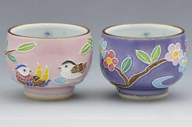 【送料無料】 京焼 清水焼 酒器 ぐい呑 ぐい飲み 2客セット交趾おしどり こうちおしどり