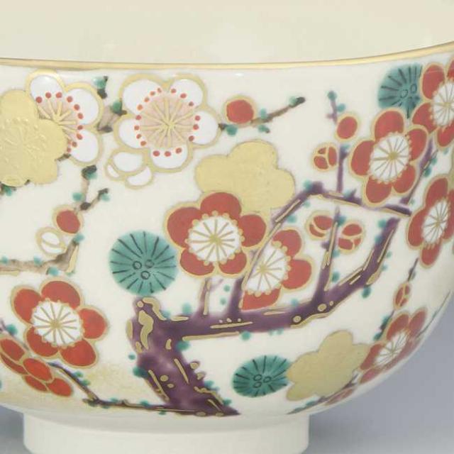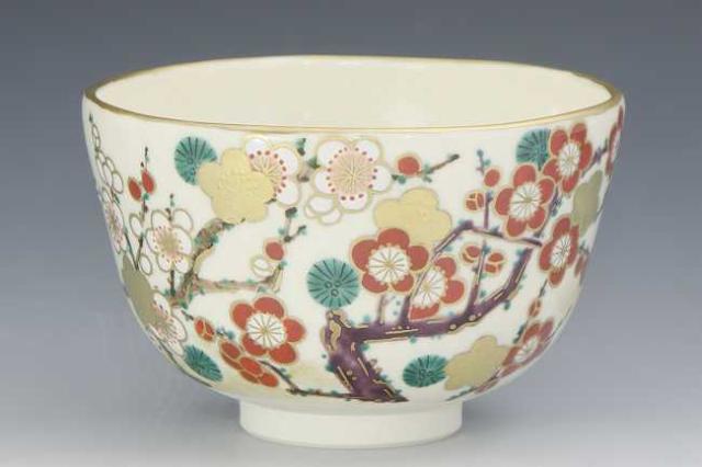 【送料無料】 京焼 清水焼 抹茶碗 仁清紅白梅 にんせいこうはくばい