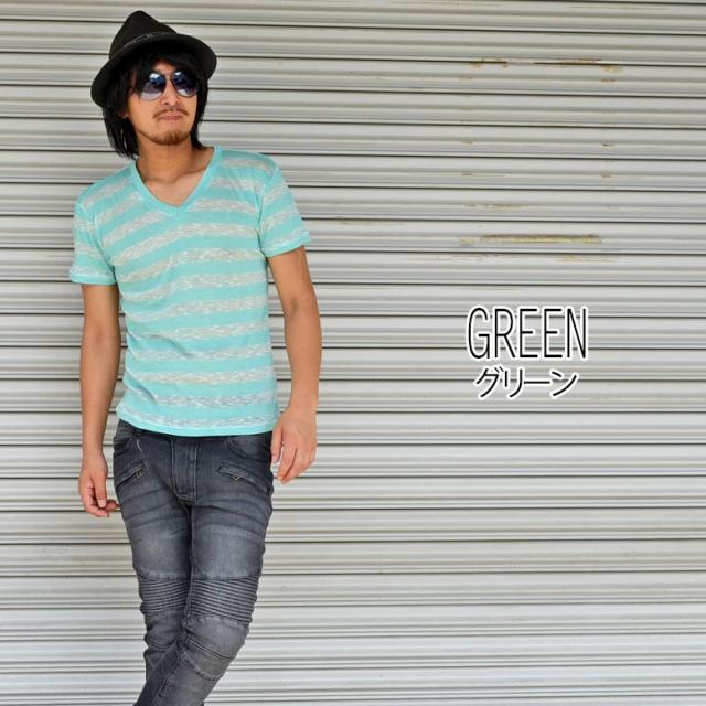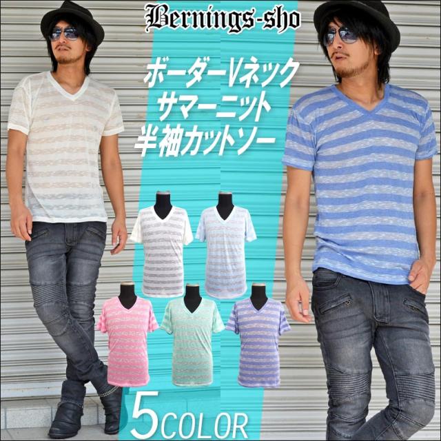 【閉店セール】透かしスラブニットボーダーVネック半袖Tシャツ 薄手 サマーニット スラブ生地 カットソー 3361-52 メンズファッション キレイメ シンプル メンズカジュアル ネック メンズ ストレッチ アメカジ クールカジュアル おしゃれ