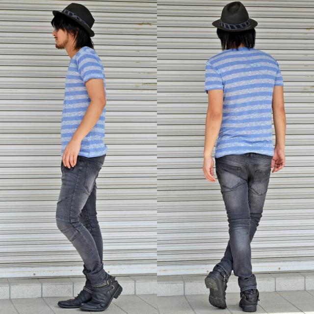 ■ランダムに入ったスラブがアクセントになったボーダーはこなれ感あるデザインTシャツ♪