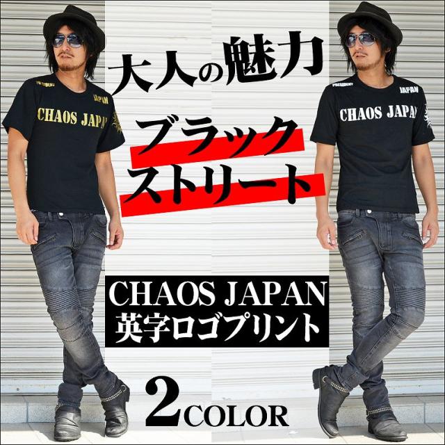 【閉店セール】ブランドロゴプリ 太陽タトゥープリ Tシャツ オラオラ ch-ry-0010 メンズファッション キレイメ シンプル メンズカジュアル Vネック メンズ ストレッチ アメカジ クールカジュアル ブラック ネコポス Chaosthoery