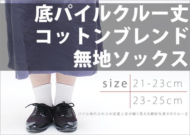 メール便1足まで 底パイル クルー丈 コットンブレンド 無地 ソックス 日本製 レディース LegStyle