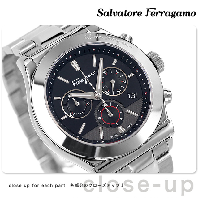 フェラガモ 1898 42mm クロノグラフ スイス製 メンズ FFM080016 Ferragamo 腕時計 ブラック