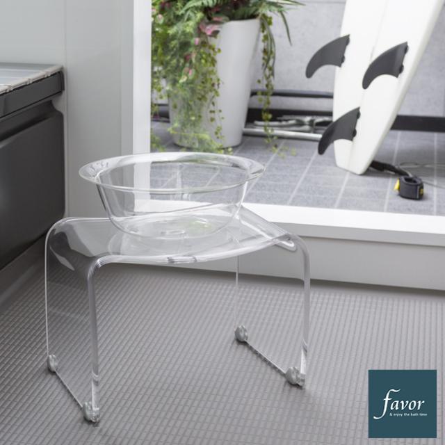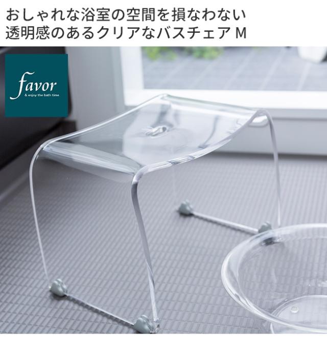 favor フェイヴァ バスチェア Mサイズ(アクリル バスチェアー お風呂イス 透明 クリア シンプル デザイン おしゃれ お風呂用 椅子 無色 浴室 風呂いす 洗いやすい イス ふろいす) 即納