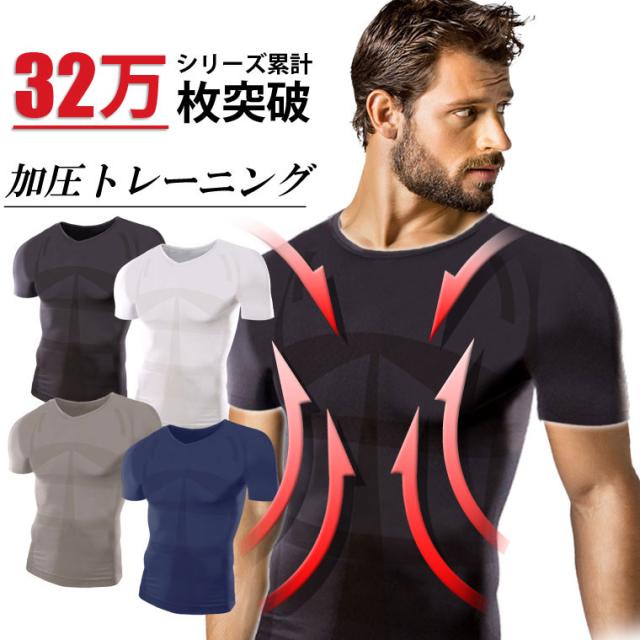 加圧シャツ メンズ 強力 ハードタイプ 加圧インナー プレスギアハード Vネック Uネック お腹 引締め 猫背 姿勢 補正 男性用 下着 Tシャツ 着圧 トレーニング 運動用 スポーツ 速乾 夏 蒸れない 半袖 厚手生地 運動不足 機能性インナー 黒 白 送料無料 agesugi_sfa