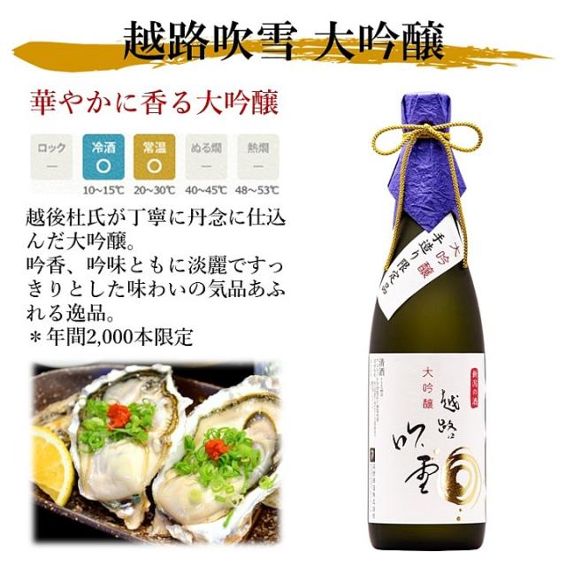 日本酒 大吟醸 越路吹雪 720ml 限定品 新潟 高野酒造 / お中元 お歳暮 お年賀 父の日 プレゼント ギフト 日本酒 辛口 お酒 贈り物 のし可 酒 地酒 ワイングラスでおいしい日本酒 金賞 プレミアム お祝い 退職祝い 内祝い お礼 お返し