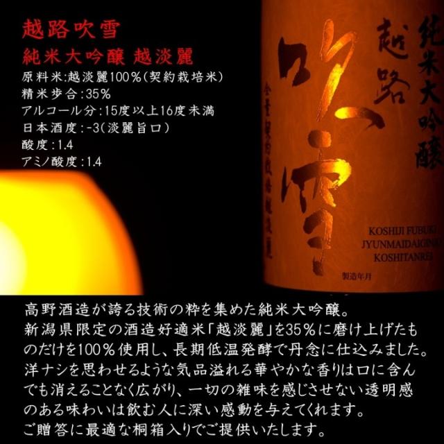 お歳暮 お年賀 日本酒 純米大吟醸 越淡麗35% 越路吹雪 1800ml 一升瓶 桐箱入 限定品 新潟 高野酒造 / お中元 お歳暮 お年賀 プレゼント ギフト 日本酒 甘口 お酒 のし可 酒 地酒 贈り物 お祝い 内祝い お礼 お返し プレミアム