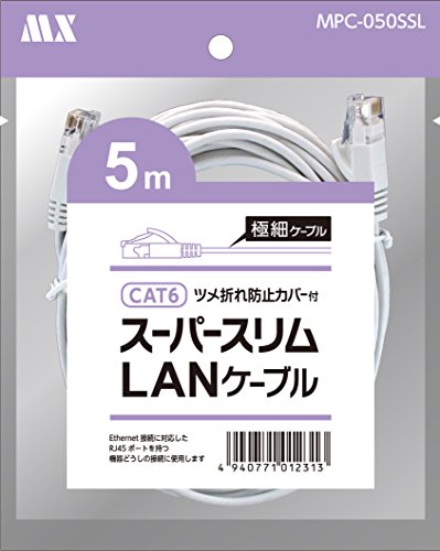 極細 直径約2.8mm CAT6 スーパースリムLANケーブル 5m 爪折れ防止カバー付 【北海道・沖縄・離島配送不可】