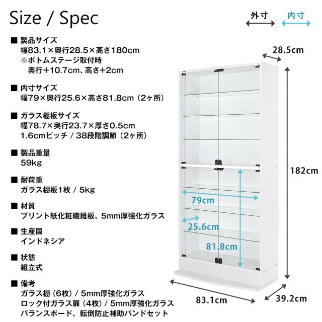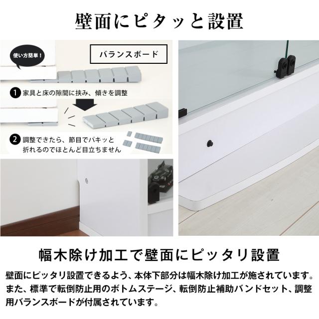 備考 | ガラス棚(6枚)/5mm厚強化ガラス、ロック付ガラス扉(4枚)/5mm厚強化ガラス、バランスボード、転倒防止補助バンドセット |