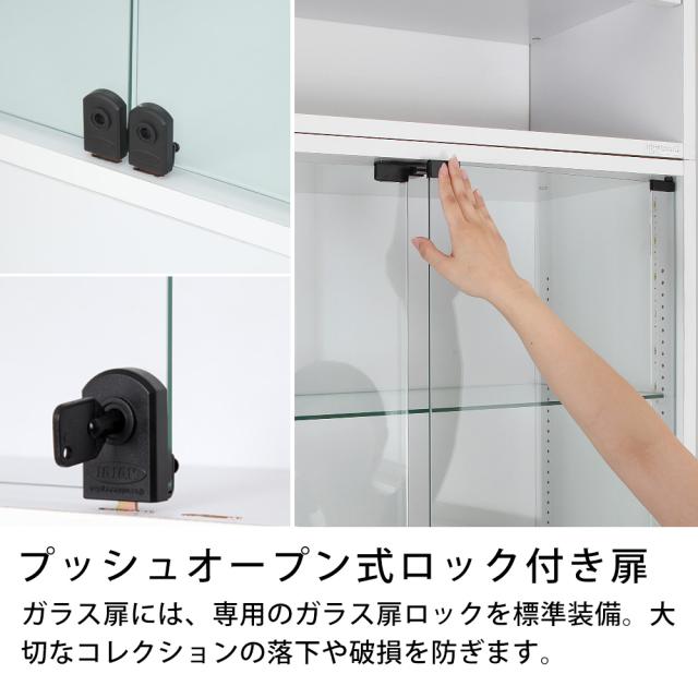 鍵付プッシュオープンガラス扉で大切なコレクションを守ります。