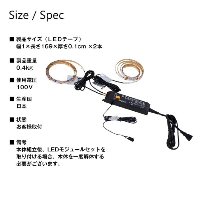 セットのLEDモジュールセットは左右側板のレールに設置できます。 左右から内側に向けてLEDライトが照射され、上から下までコレクションを美しく照らします。 LEDライトでフィギュアやプラモデルの凹凸や陰影がはっきり映し出され、お気に入りのコレクションが際立ちます。 本体下部分にON/OFFスイッチを取り付ける事ができ、配線も全て収納できます。
