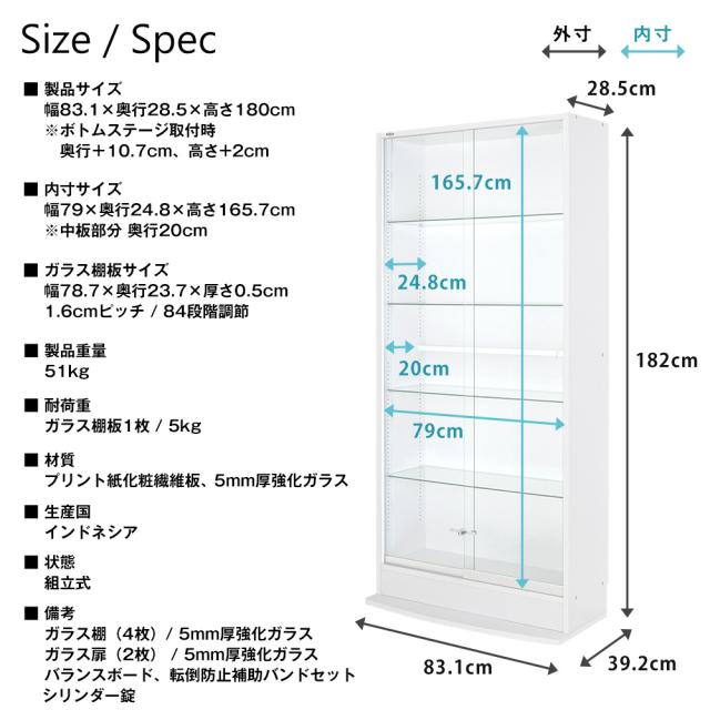 製品サイズ(約 | 幅83.1cm×奥行28.5cm×高さ180cm ※ボトムステージ取付時/奥行+10.7cm、高さ+2cm |