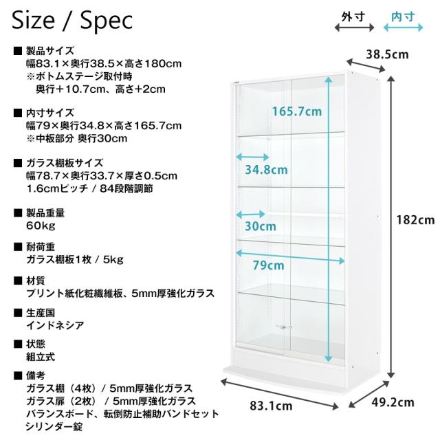 備考 | ガラス棚(4枚)/5mm厚強化ガラス、シリンダー錠(1個)、ガラス扉/5mm厚強化ガラス、バランスボード、転倒防止補助バンドセット |