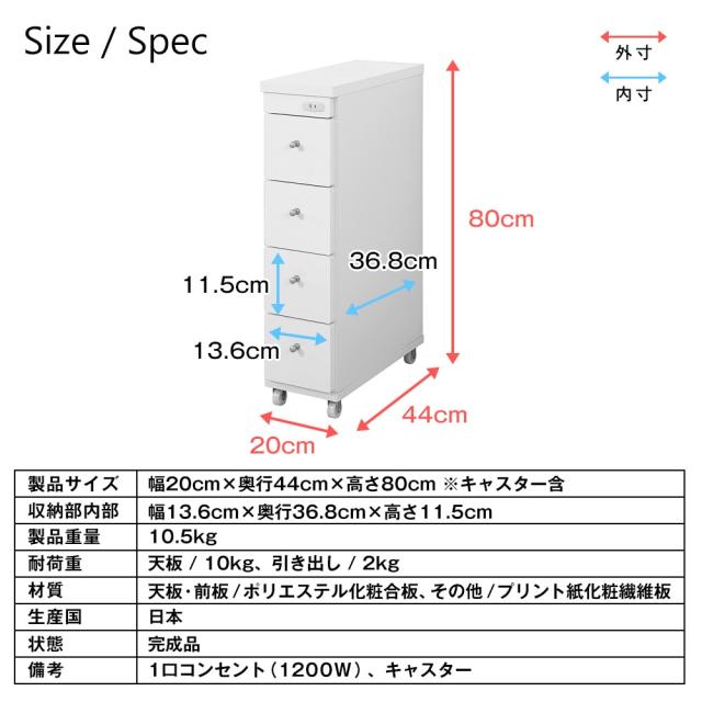 ※コンセント1口(1200W)付き ※一輪キャスター付き ※引出しストッパー付き |