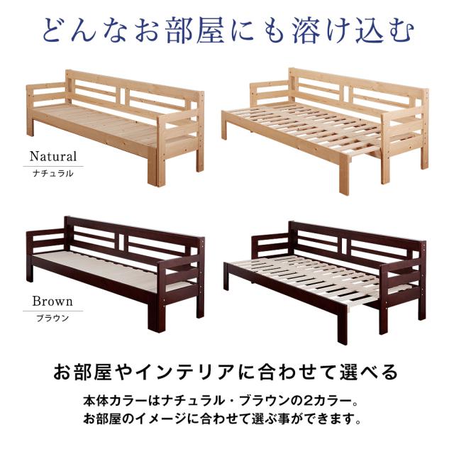 シーンに合わせてソファ・ベッドにスライド伸縮式すのこベッド。用途やスタイルに合わせてソファとベッドを使い分ける事ができる2in1仕様。手前のフレームを伸縮するだけで、シングルサイズのすのこベッド・ワイドソファに変身。静止耐荷重250kgの頑丈なソファベッドです。