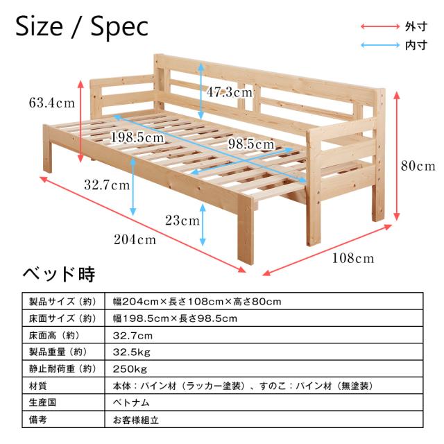 天然木 すのこ ソファベッド シングルベッド 伸縮式 低ホルムアルデヒド シオン JAJAN SFB-200