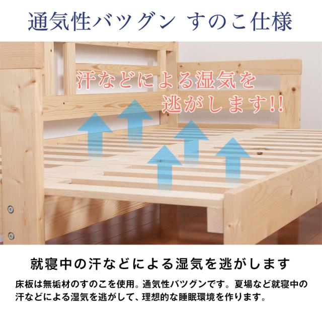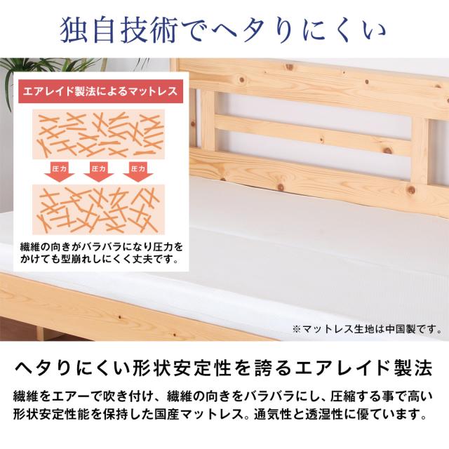 材質 | ベッドフレーム:本体/パイン材(ラッカー塗装)、すのこ/パイン材(無塗装) マットレス :固綿 ポリエステル100% |