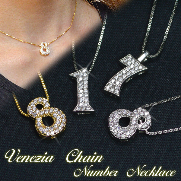 ラッキーナンバー ネックレス メンズ レディース ナンバーヘッド 1 7 8 ベネチアチェーン 数字 ペンダント 母の日 プレゼント ギフト
