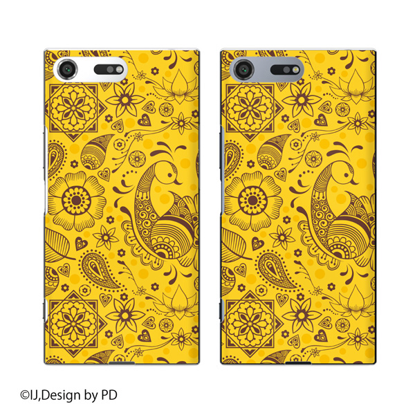 docomo Xperia XZ Premium SO-04J (純正卓上充電対応) スマホ ケース ハード カバー パターン2 アジアン 黄色