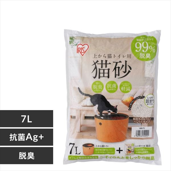猫砂 上から猫トイレ用砂 7L 猫用品 猫砂 砂 トイレ砂 脱臭 固まるトイレ砂 抗菌作用 抗菌 ペレットタイプ UNS-7L アイリスオーヤマ