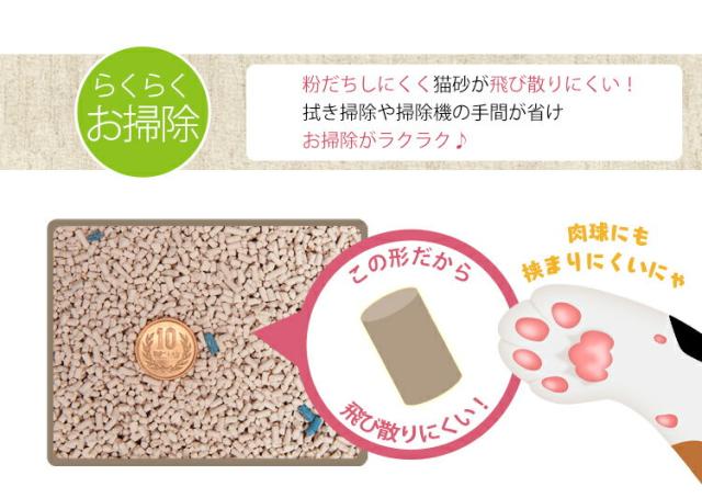 粉だちしにくいペレットタイプなので、トイレ周りをいつも清潔に保てます。